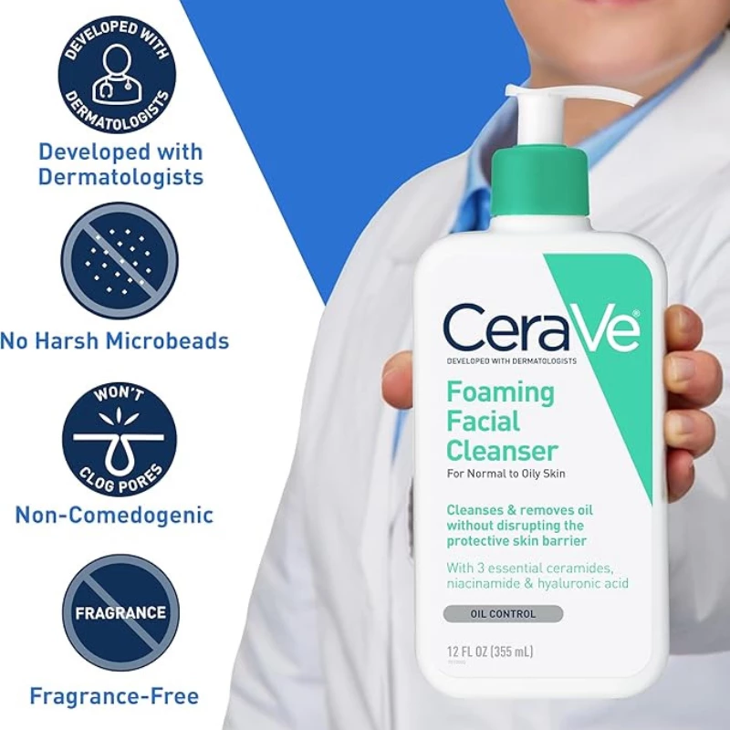 CeraVe Foaming Facial Cleanser is non-comedogenic, fragrance-free, and paraben-free, making it a top choice for daily cleansing—especially for oily and combination skin types.