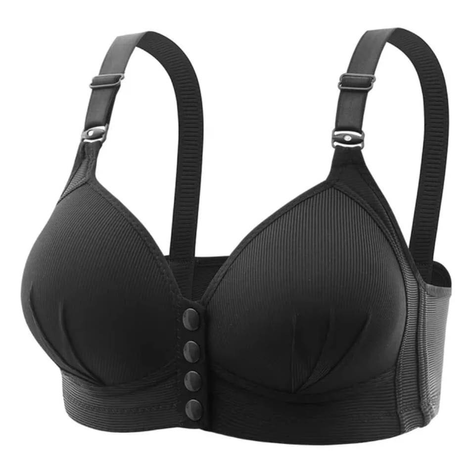 মজবুত ব্রা তে ফ্রন্ট বাটন সুবিধা সাথে ডিজাইন করা সলিড ফোমের রাউণ্ড শেপ কাপ।